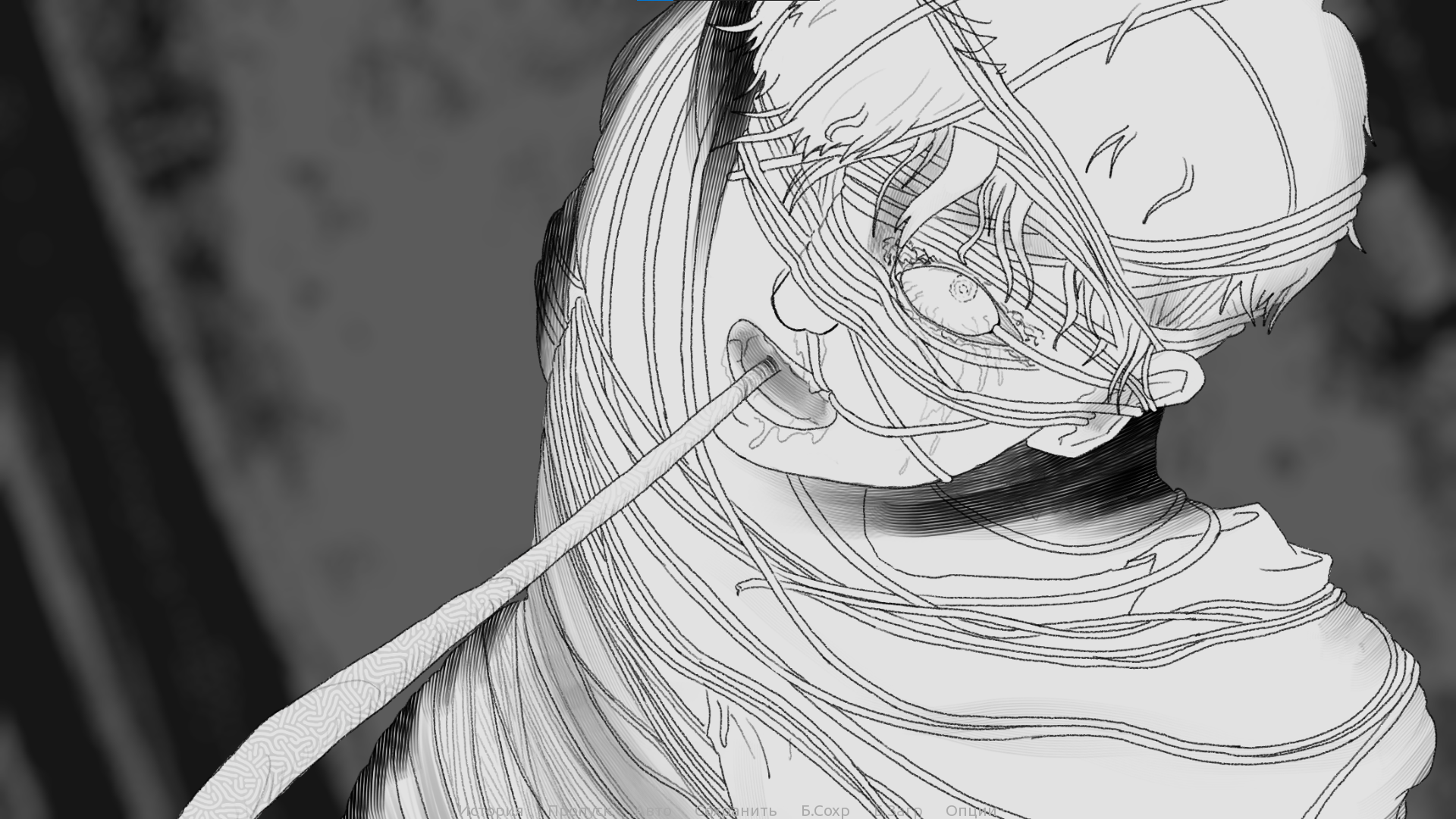 Wonderful game! I'll start, perhaps, with the visual component. I'm absolutely delighted with all these effects, character sprites, backgrounds, menus, interface, and design. I'm afraid to imagine how much work was put into all these effects, from the text effects to the animations, but everything looks and combines with each other just incredibly, especially that moment with the eye in the plate. And you can even rotate the 3D model here, it's just gorgeous! I am very inspired by all of this.